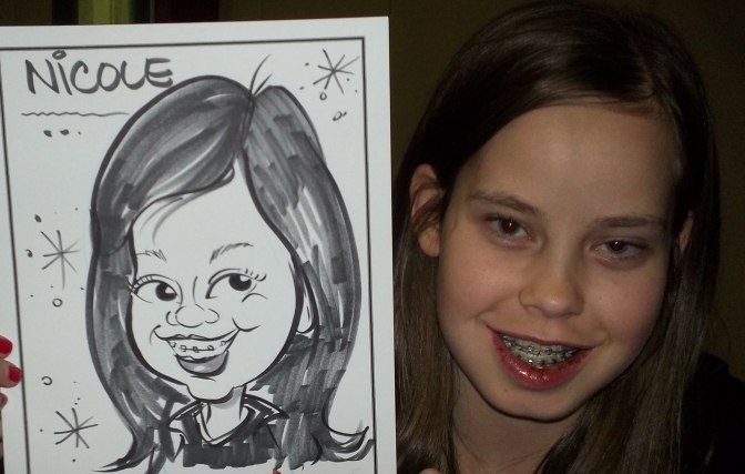 Caricaturing kids is an important segment of a party caricaturists' business. The rule of thumb I have is simply to draw the kids as cute....my personal belief is that I don't have to over exaggerate for kids....I make them cartoony. I think speed is quite important as well when caricaturing children, as you can understand that it can be a bit uncomfortable for them being drawn. Above a a couple samples of caricatures drawn in Calgary that usually take approx. four minutes.